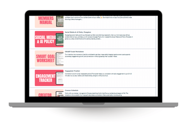 Every template and caption follows ethical marketing standards for mental health professionals, while still helping you create content that connects, educates, and converts.