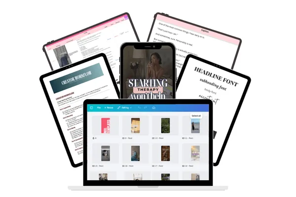Therapist-approved hooks, captions, and templates delivered every month — so you stay consistent without scrambling.